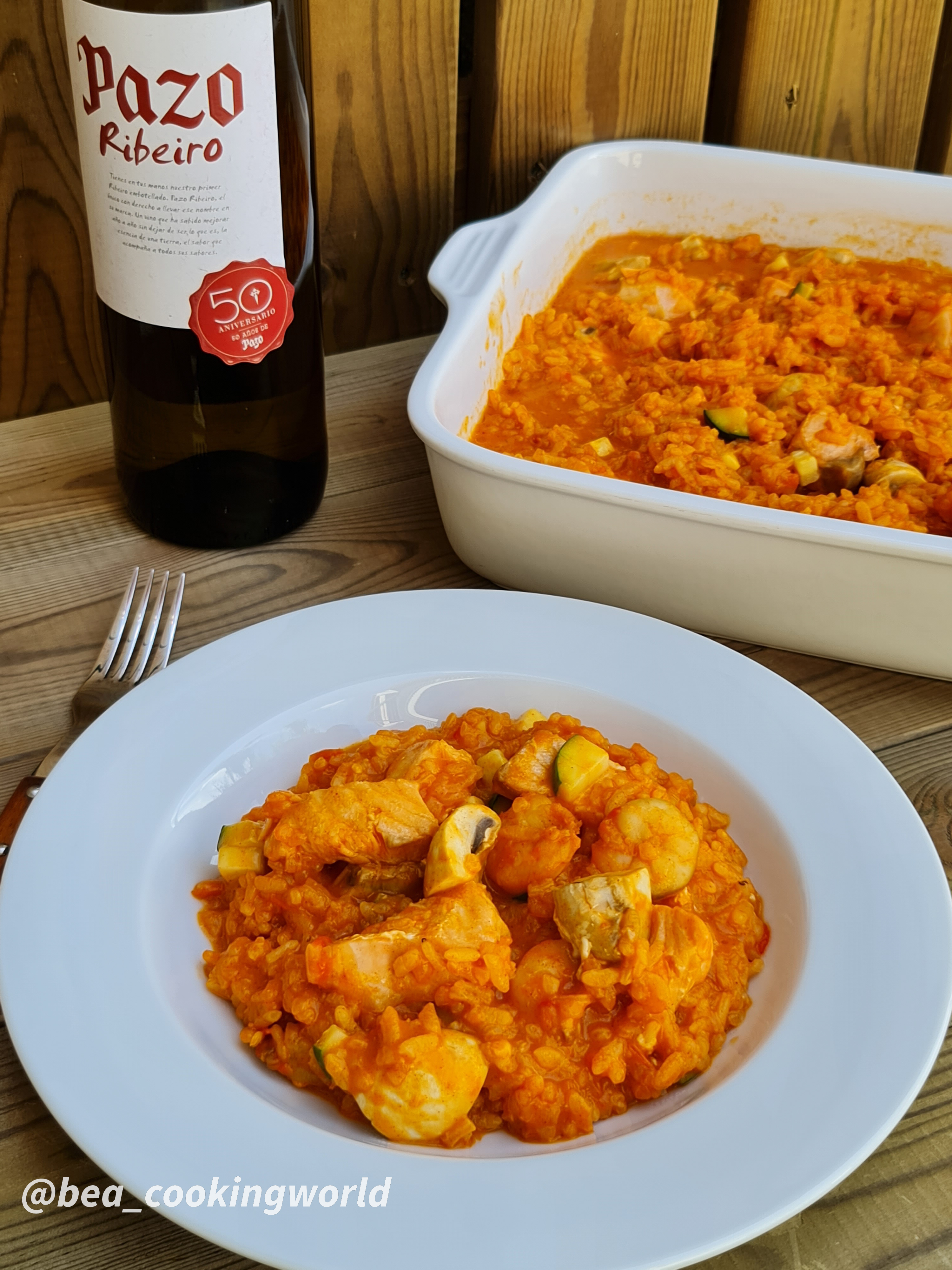 ARROZ CREMOSO DE GAMBONES, SALMÓN Y VERDURAS